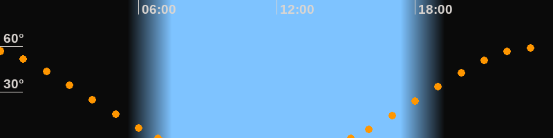 Höchster Stand (Kulmination)23:00 Uhr (h = 59°)