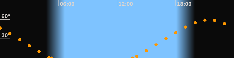 Höchster Stand (Kulmination)21:23 Uhr (h = 59.2°)