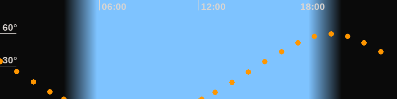 Höchster Stand (Kulmination)19:59 Uhr (h = 59.3°)
