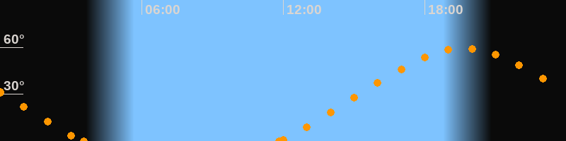 Höchster Stand (Kulmination)19:39 Uhr (h = 59.3°)