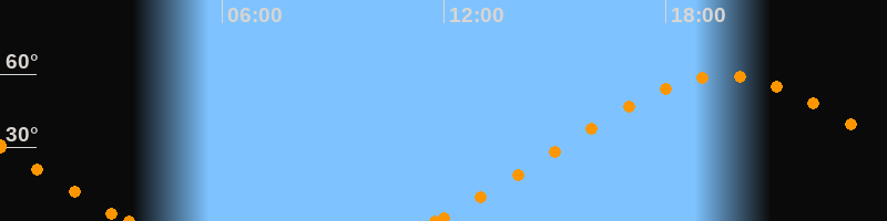 Höchster Stand (Kulmination)19:35 Uhr (h = 59.3°)
