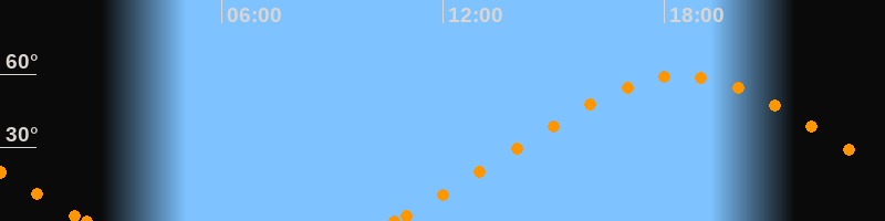 Höchster Stand (Kulmination)18:28 Uhr (h = 59.3°)