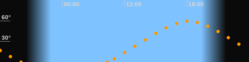 Höchster Stand (Kulmination)18:09 Uhr (h = 59.2°)