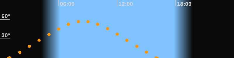 Höchster Stand (Kulmination)08:30 Uhr (h = 57.3°)