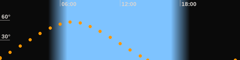 Aufgang23:31 Uhr im Nordosten (αAz = 60.2°)