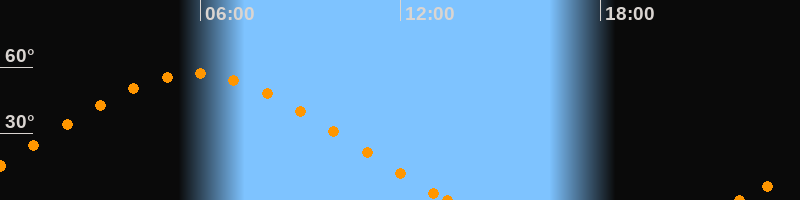 Höchster Stand (Kulmination)05:49 Uhr (h = 57.1°)