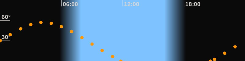 Höchster Stand (Kulmination)04:15 Uhr (h = 57.1°)