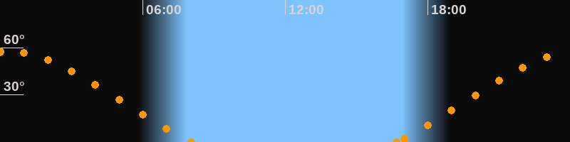 Höchster Stand (Kulmination)00:19 Uhr (h = 57.7°)