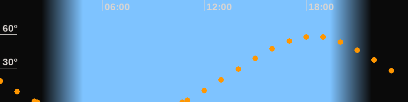 Höchster Stand (Kulmination)18:25 Uhr (h = 58.2°)