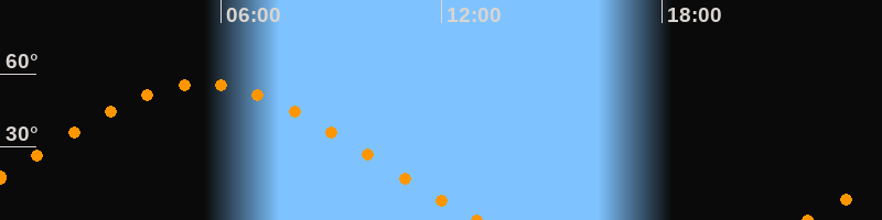 Höchster Stand (Kulmination)05:30 Uhr (h = 55.7°)