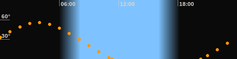 Aufgang20:19 Uhr im Nordosten (αAz = 62.5°)