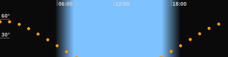 Höchster Stand (Kulmination)00:26 Uhr (h = 56.4°)