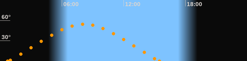 Höchster Stand (Kulmination)08:08 Uhr (h = 54.5°)