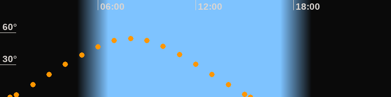 Höchster Stand (Kulmination)08:00 Uhr (h = 54.5°)