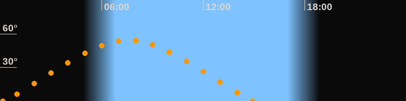 Höchster Stand (Kulmination)07:33 Uhr (h = 54.4°)