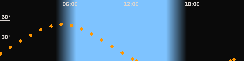 Höchster Stand (Kulmination)06:05 Uhr (h = 54.3°)