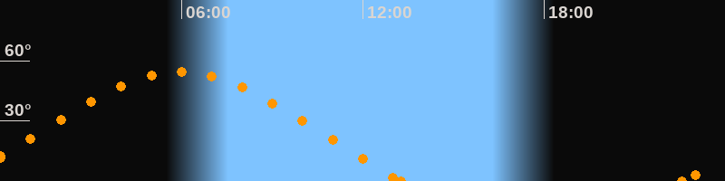 Höchster Stand (Kulmination)05:57 Uhr (h = 54.3°)