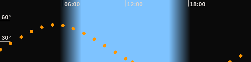 Höchster Stand (Kulmination)05:18 Uhr (h = 54.3°)