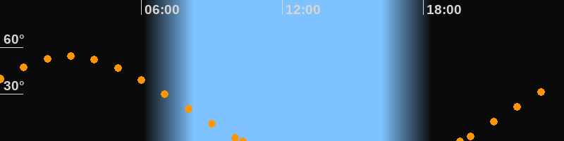 Aufgang19:33 Uhr im Nordosten (αAz = 64.7°)