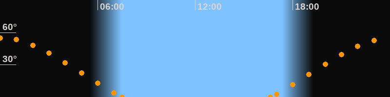 Höchster Stand (Kulmination)00:02 Uhr (h = 55.1°)