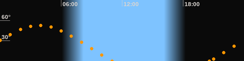 Höchster Stand (Kulmination)03:50 Uhr (h = 52.9°)
