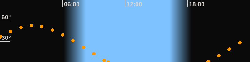 Höchster Stand (Kulmination)03:10 Uhr (h = 53°)