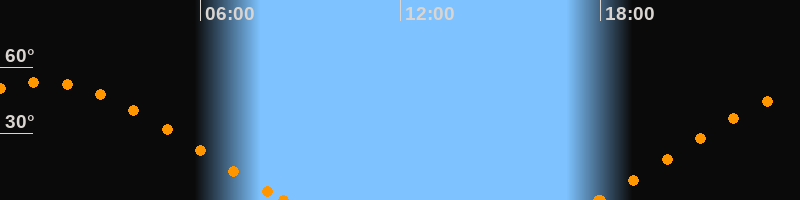 Höchster Stand (Kulmination)01:15 Uhr (h = 53.3°)
