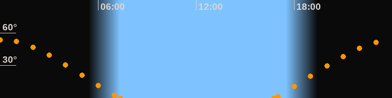 Höchster Stand (Kulmination)00:01 Uhr (h = 53.6°)