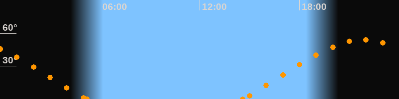 Aufgang14:34 Uhr im Nordosten (αAz = 65.6°)
