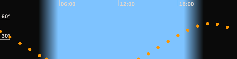 Höchster Stand (Kulmination)21:19 Uhr (h = 54°)