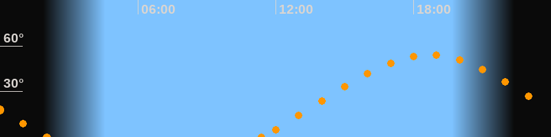 Höchster Stand (Kulmination)18:40 Uhr (h = 54.1°)