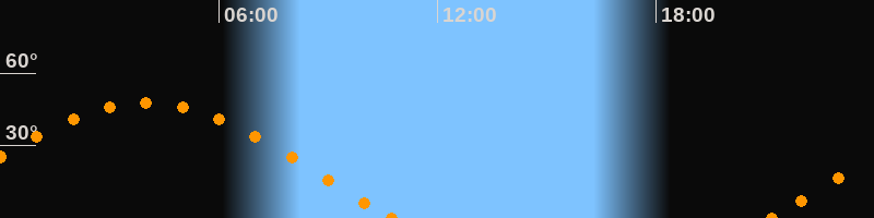 Höchster Stand (Kulmination)04:00 Uhr (h = 47.8°)
