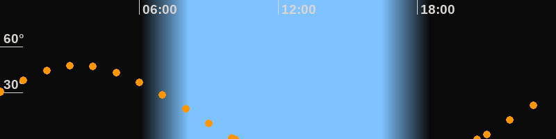 Höchster Stand (Kulmination)03:24 Uhr (h = 47.8°)