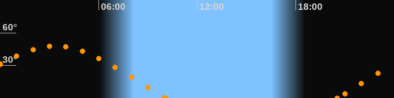 Höchster Stand (Kulmination)03:20 Uhr (h = 47.9°)