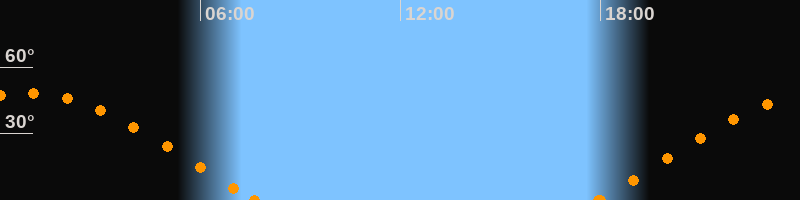 Höchster Stand (Kulmination)00:45 Uhr (h = 48.4°)