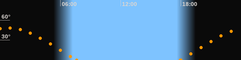 Höchster Stand (Kulmination)00:45 Uhr (h = 48.4°)