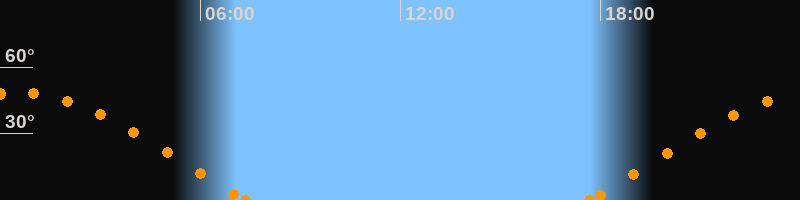 Höchster Stand (Kulmination)00:28 Uhr (h = 48.5°)
