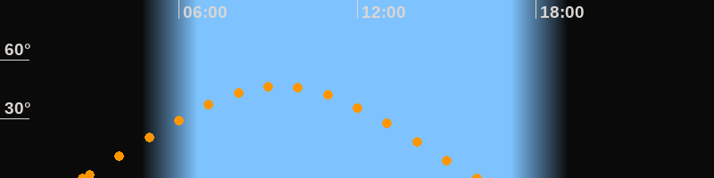 Höchster Stand (Kulmination)09:23 Uhr (h = 46.5°)