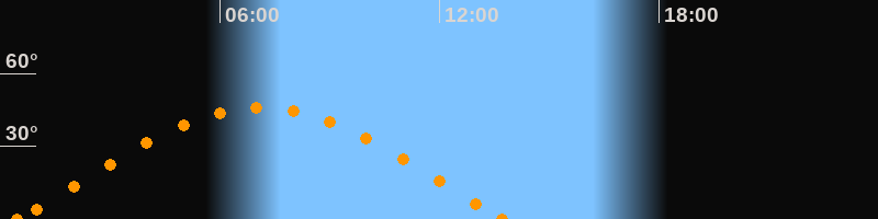 Höchster Stand (Kulmination)07:07 Uhr (h = 46°)