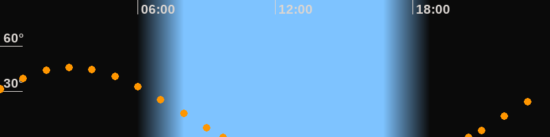 Höchster Stand (Kulmination)03:07 Uhr (h = 46.1°)