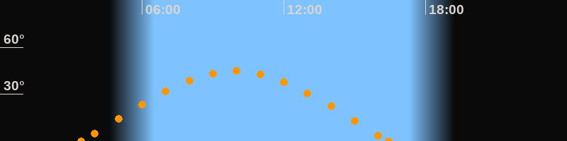 Höchster Stand (Kulmination)09:56 Uhr (h = 44.8°)