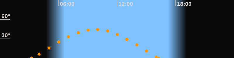 Höchster Stand (Kulmination)09:45 Uhr (h = 44.8°)