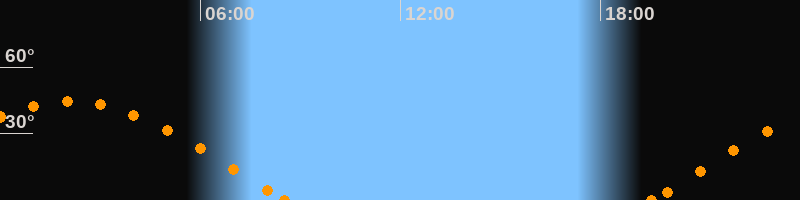 Höchster Stand (Kulmination)02:04 Uhr (h = 44.5°)
