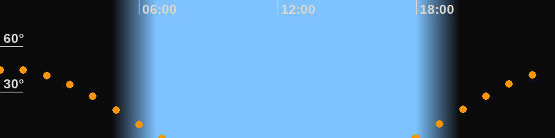 Höchster Stand (Kulmination)00:27 Uhr (h = 44.8°)