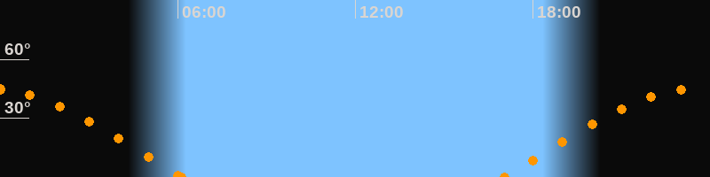 Höchster Stand (Kulmination)23:33 Uhr (h = 45°)