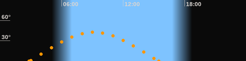 Höchster Stand (Kulmination)09:10 Uhr (h = 42.7°)