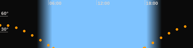 Höchster Stand (Kulmination)00:13 Uhr (h = 43°)