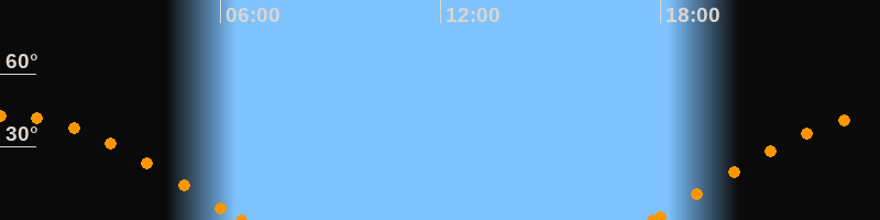 Höchster Stand (Kulmination)00:09 Uhr (h = 43°)