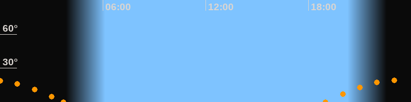 Untergang03:42 Uhr im Südwesten (αAz = 238.5°)
