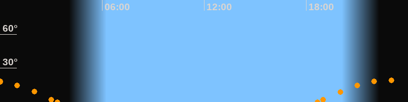 Untergang03:21 Uhr im Südwesten (αAz = 238.4°)